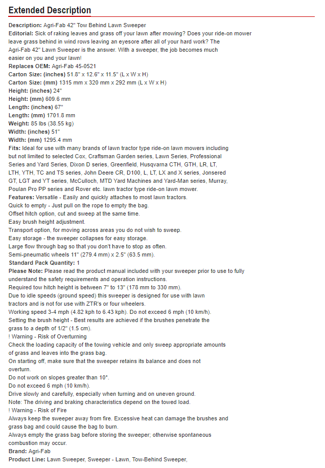 Sick of raking leaves and grass off your lawn after mowing? Does your ride-on lawn mower leave grass behind in wind rows leaving an eyesore after all of your hard work? The Agri-Fab 42″ Lawn Sweeper is the answer. With a sweeper, the job becomes much easier on you and your lawn!